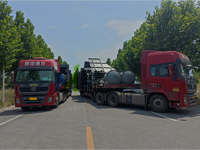 氰尿酸尾氣治理濕電除霧器裝車完畢,準(zhǔn)備出發(fā)